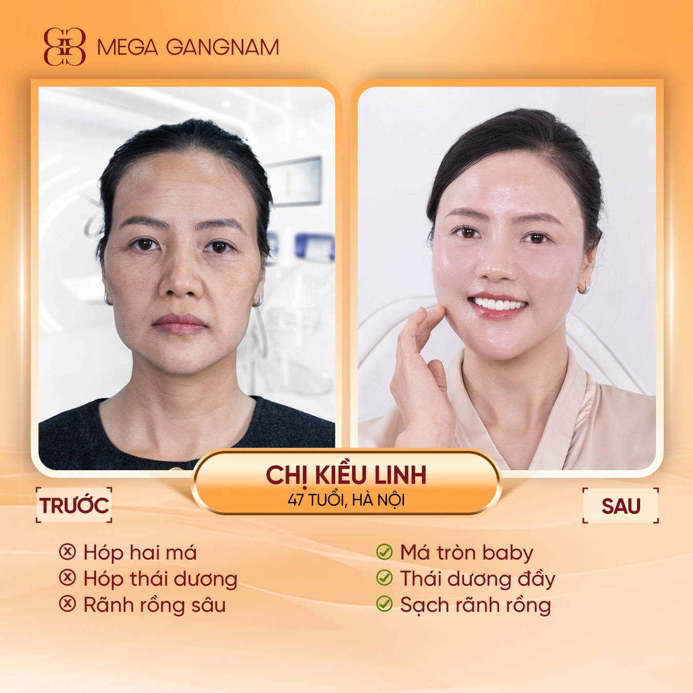 Với những trường hợp má hóp nhẹ đi kèm các dấu hiệu lão hóa tổng thể như da chùng nhão, nếp nhăn, giảm đàn hồi, liệu trình Meta Elite+ tại Mega Gangnam chính là một giải pháp trẻ hóa toàn diện, an toàn và không xâm lấn.